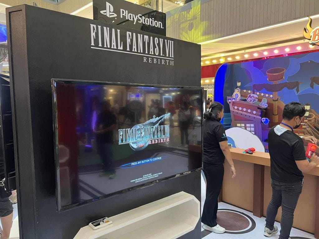 Held at SM City North EDSA The Block from March 1 to 3, the FFVII Rebirth launch event was a very intimate gathering of Final Fantasy 7 fans – with a large activation area set up in the middle of the wing featuring booths, displays, and a center stage patterned after famous locations found in the game. Primarily inspired by the Gold Saucer amusement center, the launch event was a fun-filled gallery with different activities to participate in – including a huge photo wall display featuring standees of main characters Cloud Strife, Sephiroth, and Zack Fair, a Chocobo Stop with benches visitors could sit in and take photos from, a gacha machine featuring some stuffed toys that looked like Mogs, and of course playable PS5 booths set up that featured copies of FF VII Rebirth that anyone could try out to get a taste of the game themselves.