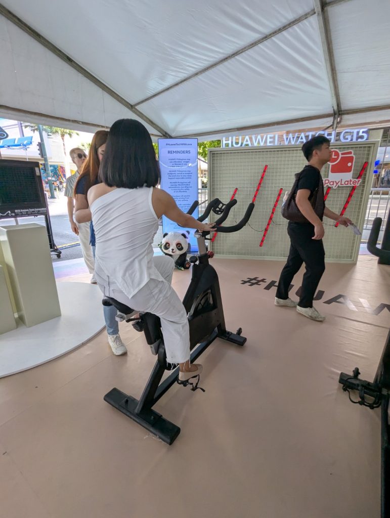 To showcase the features of the HUAWEI Watch GT 5 such as the TruSense System, users could pedal for a few minutes at the booth that had stationary bikes. The Watch GT 5 has a suite of health and fitness tracking features which includes the heart rate, blood oxygen, and respiratory rate monitoring.