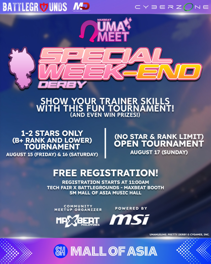 Another tournament taking place that isn’t horsing around is part of their Uma Meet powered by MSI, lovingly named after Uma Musume Pretty Derby. The Special Week-End Derby will have trainers from all over showcasing their horse girls and proving who’s the best through a limit-ranked tournament happening Friday and Saturday, and an open tournament on Sunday.