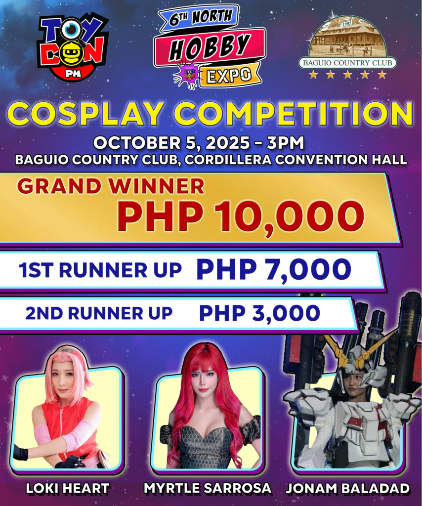 On the last day of the event, join other con-goers in the North Hobby Run! With three distances (3K, 6K, and 12K) not only do you get to enjoy the breathtaking scenery that Baguio has to offer, you also get to experience the 3rd day of the expo a bit earlier, with gates opening at 8 AM. Other inclusions for joining the fun run are a race t-shirt, snacks, a finisher medal, a raffle entry, and entrance to the 3rd day of the event.
