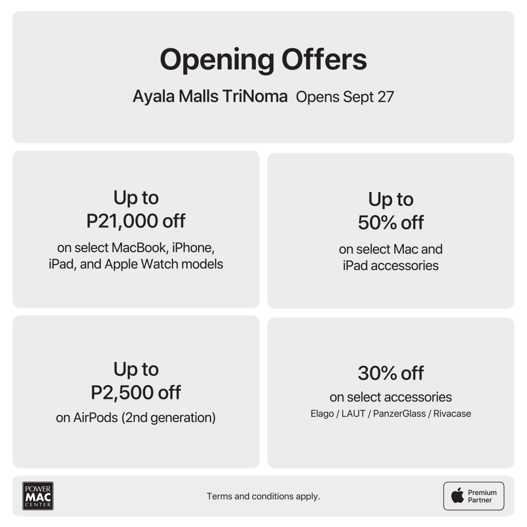 Get up to P21,000 off on iPhones and other Apple devices with the Power Mac Center TriNoma reopening