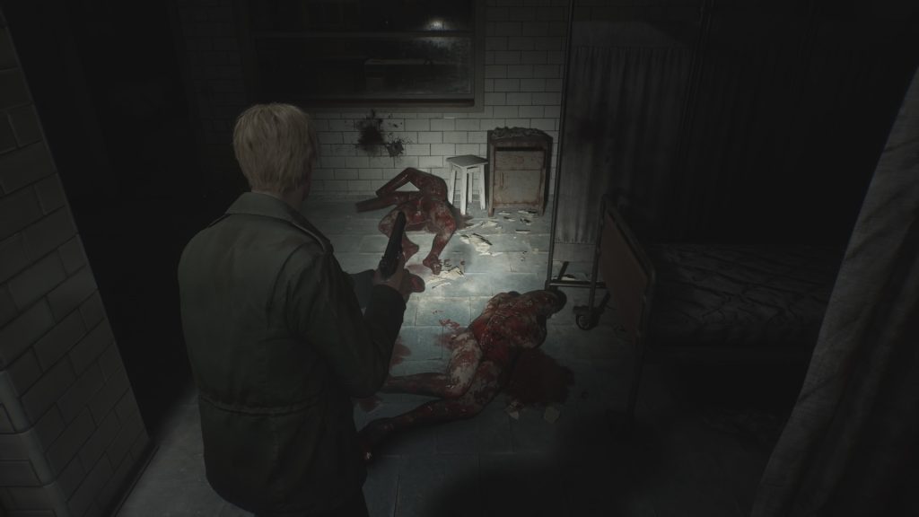 Probably the biggest change from the original Silent Hill 2 experience is the combat – and that has a modern day action game flavor to it that’s not unlike The Last of Us and the Dead Space Remake. The first weapon James will find and start off with is a wooden plank – which you can use to smack monsters multiple times until they hit the ground and you stomp on them to finish them off for good. Firearms and other weapons soon become available as you progress through the game such as a handgun and shotgun, but like any traditional survival horror title this is not meant to be a game where you go guns blazing. You’ll have to be conservative and make sure you save your ammo well, and that also counts for health items too. Depending on the difficulty settings these can be rare to find around, so taking damage and staying alive is dependent on your survival skills. Bringing out the map is quite handy, and it will mark out what places you’ve explored and what objectives you’ve accomplished too. There is also a dodge button – where timing needs to be mastered especially when you fight monsters and bosses like Pyramid Head and they try to take a swing at you.