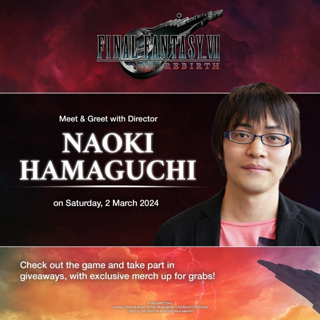 To celebrate the release of the game, Square Enix Asia and Bandai Namco Entertainment Asia have officially announced that there will be a Final Fantasy VII: Rebirth Launch Event happening this March 1 to 3 at SM City North EDSA – with playable versions of the game on hand for visitors to try as well as exclusive merch up for grabs. Final Fantasy VII fans will also have the opportunity to meet the director of the game himself Naoki Hamaguchi as he flies to the Philippines for a meet and greet session on the second day, March 2!
