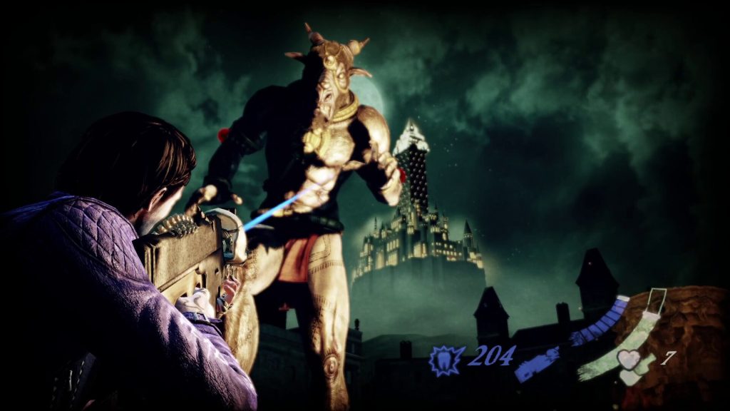 Among the creators of Shadows are two very recognizable names from the Japanese game development industry. The game was written by Goichi Suda or Suda51, known for such offbeat titles as Killer7 and No More Heroes, and produced by Shinji Mikami of Resident Evil fame. It’s rare for a modern video game to reflect so much of its creators’ quirks, but this is very much what sets Shadows apart. From the main character’s name (Garcia Hotspur), to the weapons (Garcia’s main gun is called the Boner), to the scenarios (one area is just literally the Evil Dead cabin, complete with the trap door), this game is very much a product of Suda51’s strange sense of style. Likewise, its third-person over-the-shoulder perspective and resource management mechanics strongly echo those from Resident Evil 4.