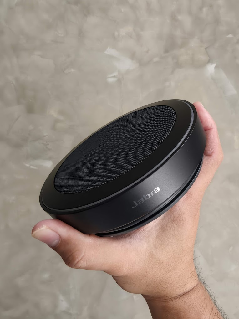 The Jabra Speak2 75 is a professional, portable speakerphone designed to significantly enhance the audio quality of your conference calls and provide an immersive sound experience for both work and leisure. The device itself sports a modern and minimal “puck” shape with brushed aluminum detailing and premium speaker fabric. It’s designed to be highly portable, coming with a nice travel pouch, and is durable enough to handle daily use, with an IP64 rating for dust and water resistance. This means you can use it in various environments without worry. If you have cargo pants, the whole puck fits right in.