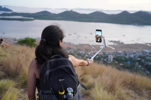 Another reason why the Flow is every vlogger’s multitool is because it is many devices in one: it has a built-in tripod for solo vlogging. It extends into a selfie stick for your more touristy shots. It even comes with a built-in cold shoe in case you need to attach an external microphone for better audio recording! What more could a content creator want?