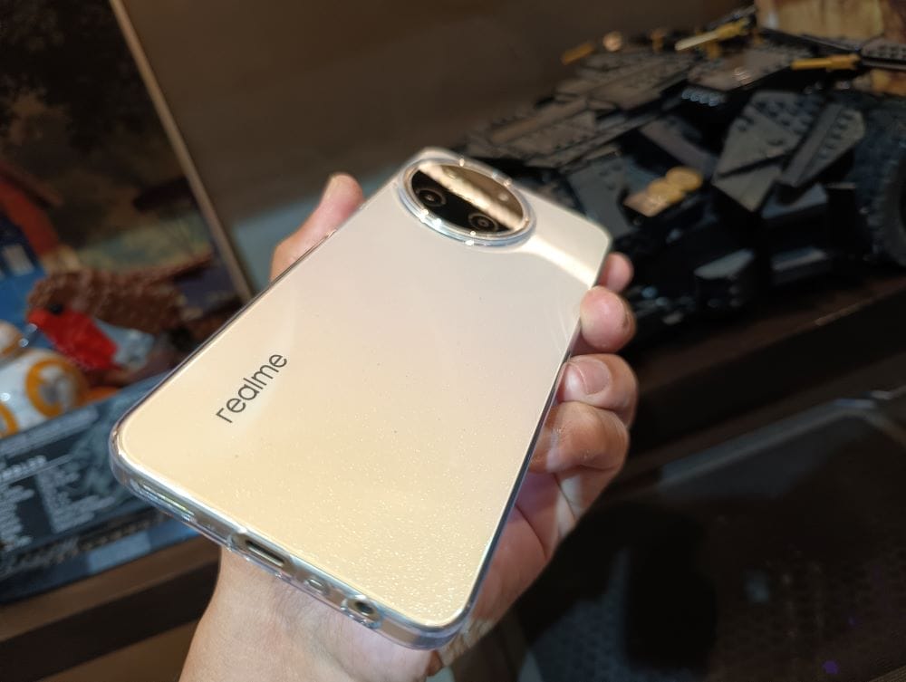 Out of the box, the realme 11 comes with a super fast 67W SUPERVOOC charger, USB C cable, protective gel casing, and the unit itself. The realme 11 comes in two colors – Glory Gold and Glory Black. In the photo is the former. When held up to the light, it gives off a really elegant 70’s glitter surface coat. I purpusely shot the device at a particular angle so you can see how it looks with the case — definitely go for one with a transparent back to show off that glitter bomb!