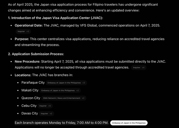 Navigating visa applications as a Pinoy can be an emotional rollercoaster—equal parts hope and scouring through Facebook groups for days, even though experiences vary widely. AI keeps it straight and stress-free, listing embassy links, processing times, and the necessary financial documents.