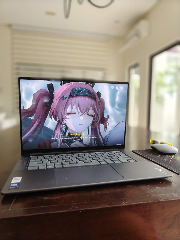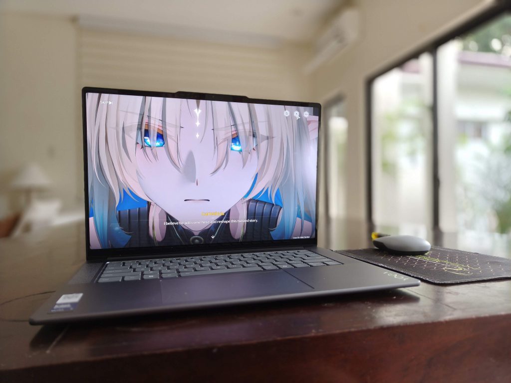 On the hardware end, the Aura Edition makes use of the Lunar Lake chip platform . The Yoga Slim 7i Aura Edition that I am using comes with a Core Ultra 7 chip with an Intel Arc 140V integrated graphics card. The Arc 140V is the centerpiece in this amazing tech buffet experience because it can do mid-range gaming with barely any heat. I find it puzzling that the Lenovo website doesn’t push this card, and merely says “Integrated” when scrolling through tech specs. A bit of history: integrated Intel graphics such as the GMA series from way back was a huge nothingburger. It was either you could get a slim laptop that could not do gaming or a bulky “gaming laptop” that was not portable. These came in plastic and would have huge power bricks bigger and heavier than smartphones.