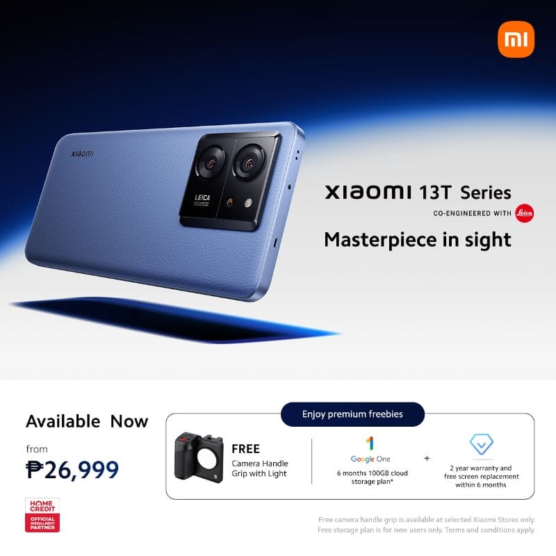 Customers who buy a Xiaomi 13T Series device will get sweet freebies like a camera handle grip with light, Google One (with six months of free cloud storage), a two-year warranty, and free screen replacement within six months. You can now get a new Xiaomi phone with easy monthly payments through Home Credit, Xiaomi’s official installment partner.