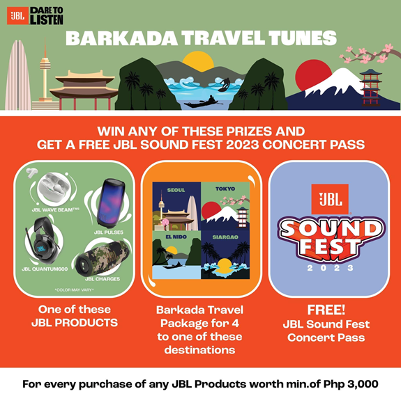 Wanna go? Just dive into the JBL Barkada Travel Tunes promo! Registered entries from November 3, 2023 to December 14, 2023 (until 5:00 PM only) will receive one complimentary concert pass to the event.