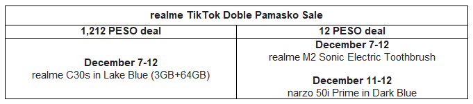Meanwhile on realme’s official TikTok Shop, fans can revel in vouchers of up to P1,200 and discount up to 60% OFF from December 7-12. To make it even merrier, each day of the sale campaign duration, different realme products will be up for grabs via the 1,212 and 12 PESO deals.