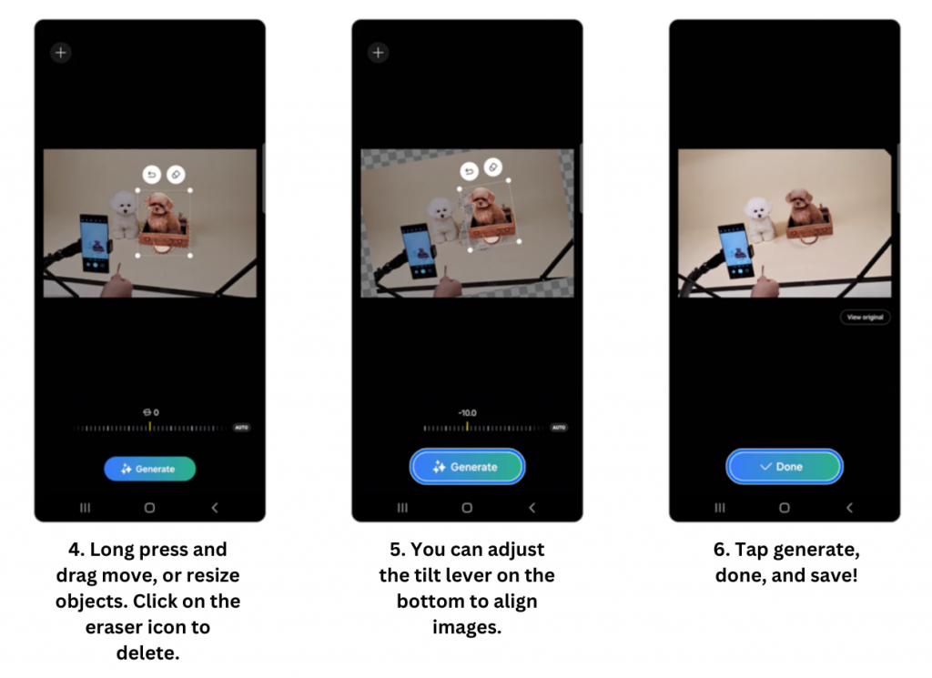Generative AI allows you to remove and resize people, pets, or objects in your photos while using AI or even rotate the photo to get the perfect angle then Galaxy AI can step in to fill in missing pieces. You can even move objects around to create a scene straight from your imagination, it’s literally a picture-perfect dream come true.