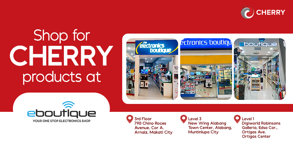 Hey techies! We just found out that select E-Boutique branches are now carrying CHERRY products!