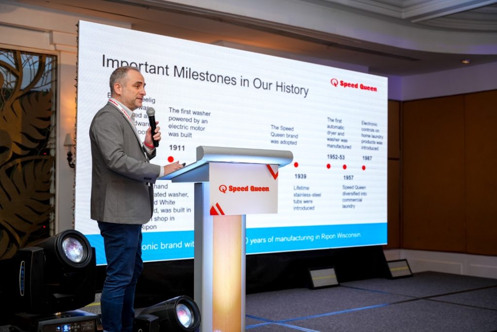 The event featured opening remarks from both Adam Heather and Phillip Chan, followed by an engaging presentation on the diverse range of Speed Queen products, including Top Load Washers, Front Load Washers, LPG Heated Dryers, Electric Heated Dryers, and Stacked Washer/Dryers. Attendees were captivated by the product video showcasing the Speed Queen home lineup, emphasizing the brand’s commitment to delivering commercial-quality washers and dryers that bring lasting performance and longevity to every home.