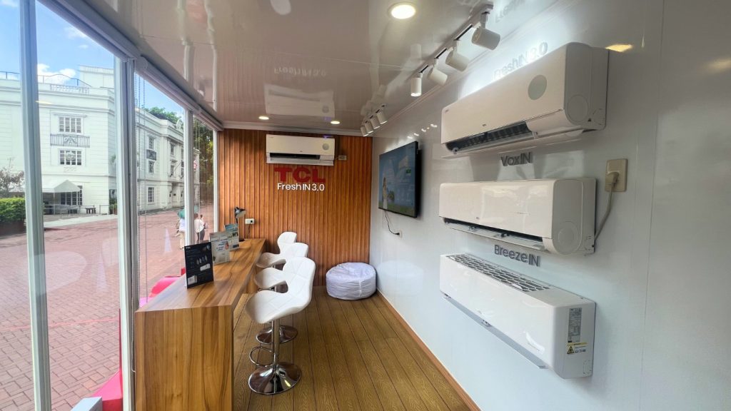 Stepping inside the TCL Cool Truck was like entering a refreshing oasis, designed to beat the oppressive summer heat. The truck’s interior was ingeniously divided into distinct “rooms,” each showcasing TCL’s impressive range of appliances. Upon entering, visitors were immediately greeted by the TCL FreshIN 3.0 inverter air conditioners, which took center stage, demonstrating the standout features that make this model truly revolutionary.