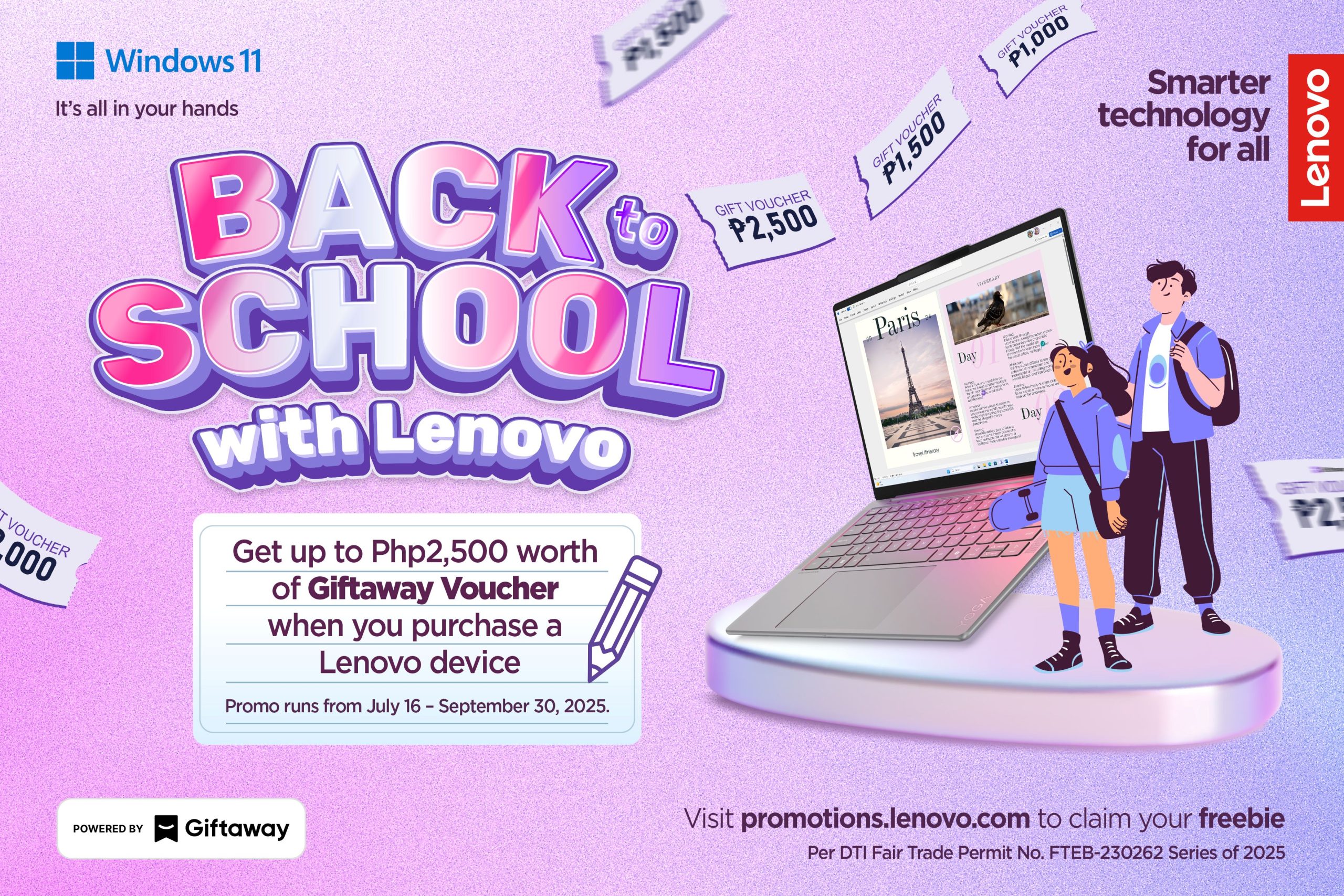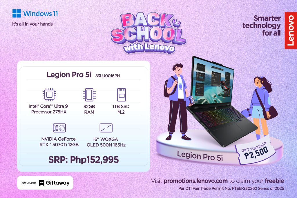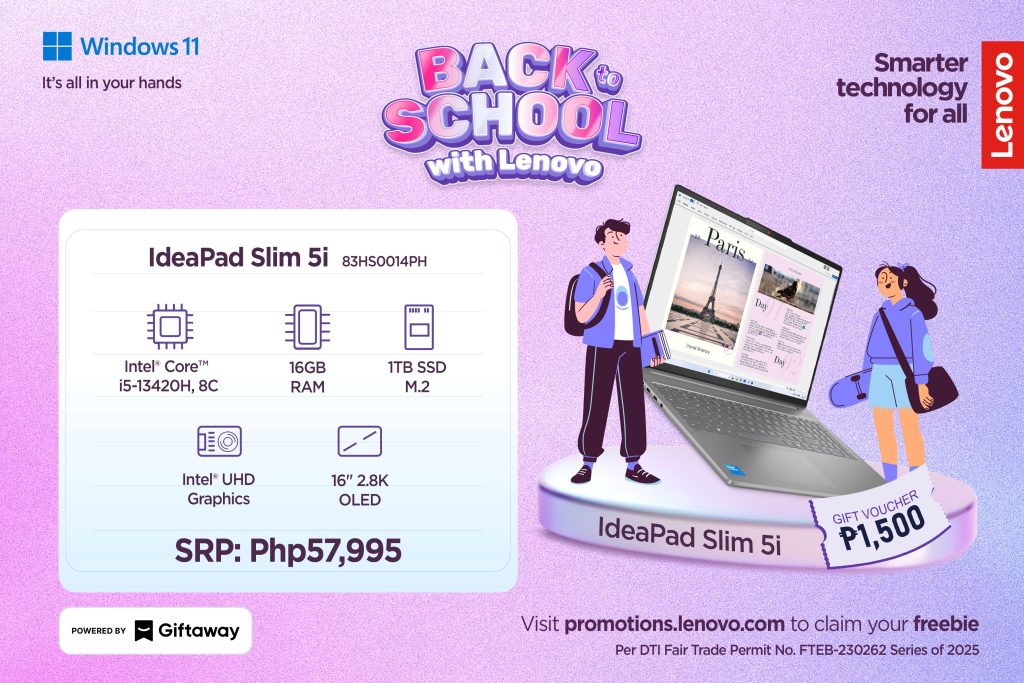 Lenovo is back with a smarter, more rewarding way to gear up for the new academic year. From July 16 to September 30, 2025, customers can enjoy up to ₱2,500 worth of Giftaway vouchers with the purchase of participating Lenovo devices through its Back to School with Lenovo: Laptop + Giftaway Voucher Deal!