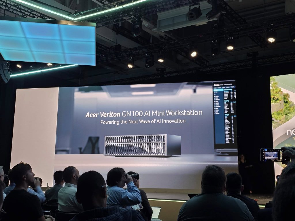 Finally, Acer pulled the wraps off the Veriton GN100, an AI mini workstation built around the NVIDIA GB10 Grace Blackwell Superchip. Despite its compact size (150 x 150 x 50 mm, <1.5 kg), it delivers up to 1 PFLOPS of FP4 AI performance, with 20 Arm-based CPU cores, 128 GB unified memory, and 4 TB NVMe SSD storage.