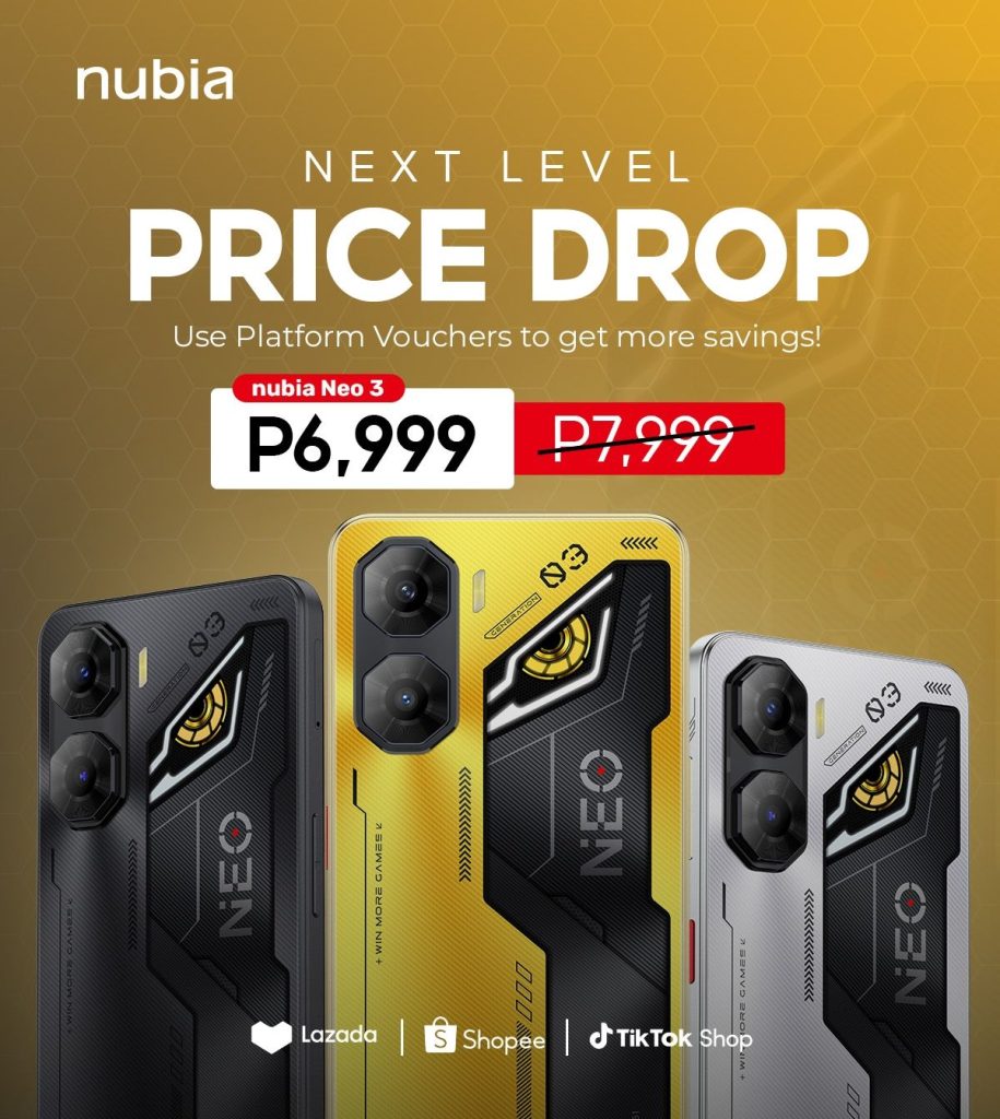 At the heart of the sale is the nubia Neo 3 4G, now available at only ₱6,999, slashed from its original price of ₱7,999. Packed with a 6.6-inch FHD+ 120Hz display, 50MP AI dual camera, dual shoulder triggers and a 6000mAh battery with 33W fast charging, the Neo 3 4G delivers an all-around upgrade for everyday use, whether for gaming, photography, or all-day entertainment.
