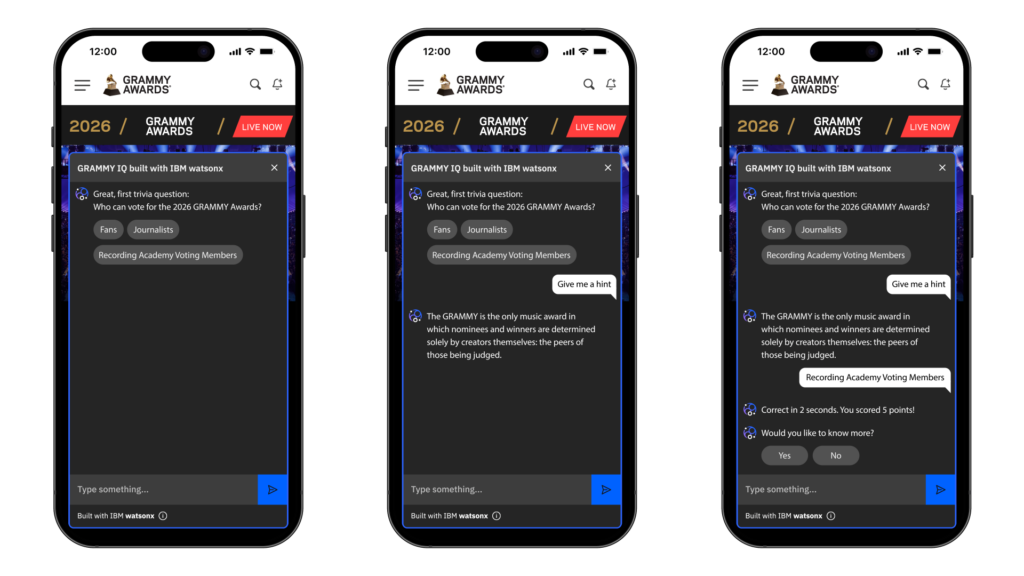The platform uses IBM’s Granite 3.0 large language model to create interactive quizzes based on decades of Grammy data. Users can answer questions, request hints, and view explanations, while top scores are displayed on a live leaderboard on Grammy.com. Daily sweepstakes and social-sharing features aim to encourage regular fan engagement.