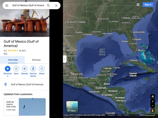 Google recently announced this change in their Maps service stating that for users in the United States, the body of water will be labeled “Gulf of America” while people visiting from Mexico will see “Gulf of Mexico” instead. Meanwhile, the rest of the world gets both names: “Gulf of Mexico (Gulf of America)”. This change stems from U.S. President Donald Trump’s Executive Order 14172, “Restoring Names That Honor American Greatness”—one of the dizzying flurry of orders Trump released on the first day of his second term.