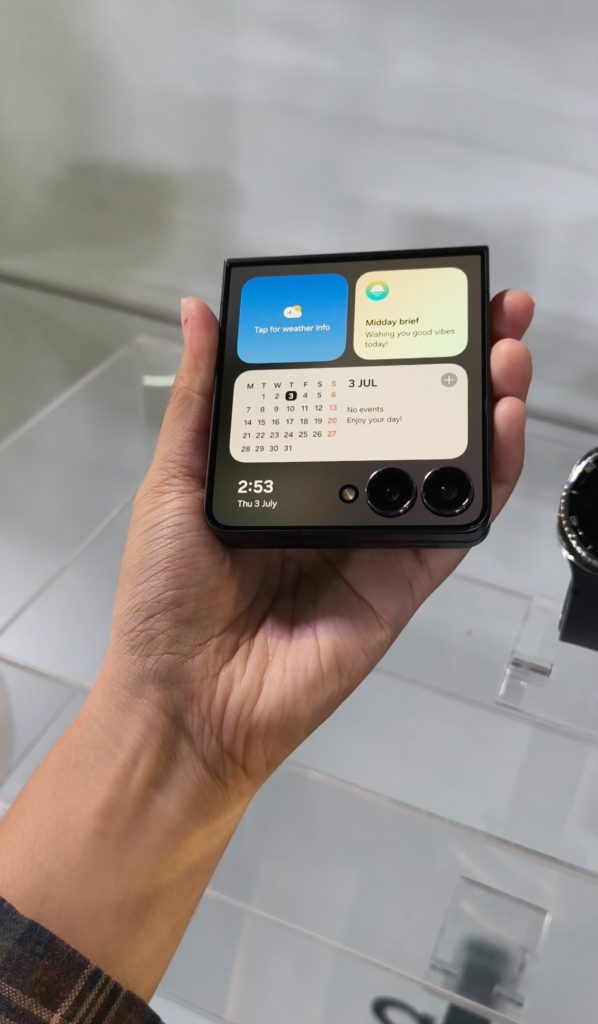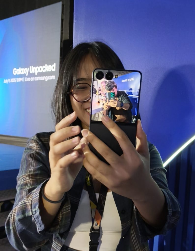 This year, users can take better selfies straight from the Galaxy Z Flip7’s 4.1-inch Super AMOLED FlexWindow, no need to unfold. Samsung has made the its outer display bigger, stretched to its edges, for users to do more with the cover screen.