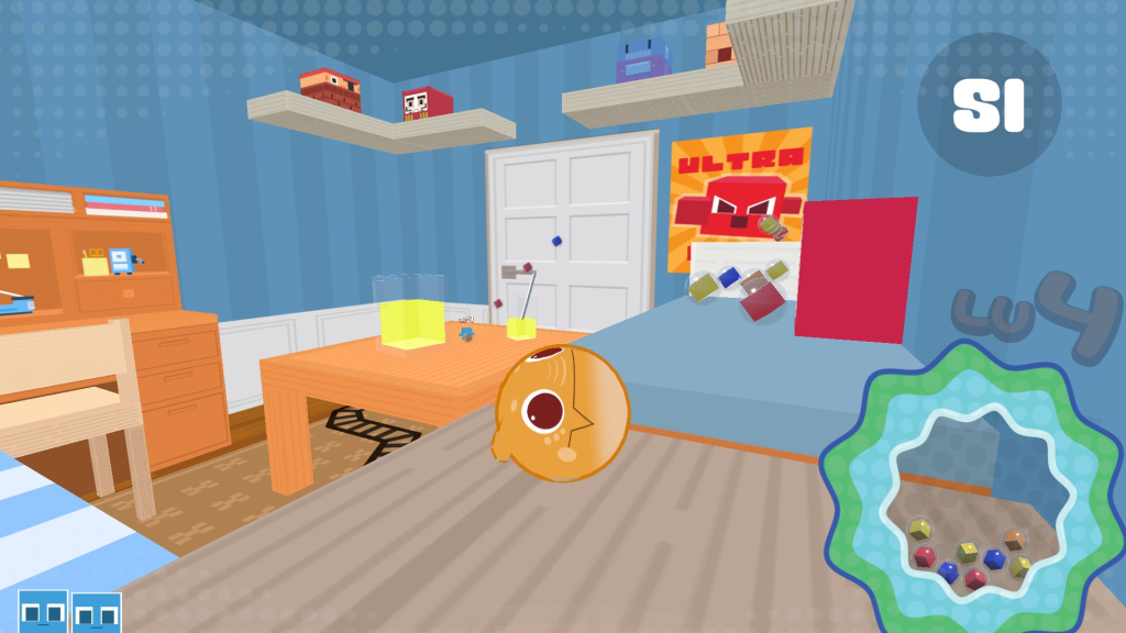 You control our round little friend. He’s hungry, but the food doesn’t match his mouth. So how does he eat it? That’s right, he gets bigger. Like Katamari Damacy, Baku Maru grows with every bite, but it also fixes one of Katamari’s greatest flaws: the awkward dual-stick control scheme. Baku Maru simplifies that while keeping the charm.