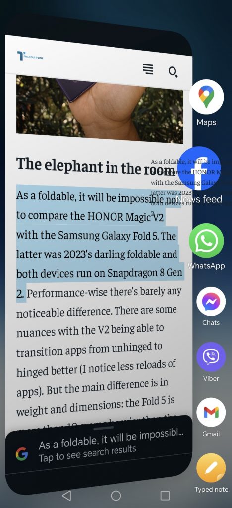 The Magic Portal firmware update came about two weeks into my usage of the device and this enabled a highly coveted feature that I haven’t seen in any phone as of late. Similar to Windows Taskbar, you can highlight lines of text or long press a photo and a list of frequently used apps will appear on the side of the screen, allowing you to drag and drop your media. This is particularly useful for wanting to immediately post Gallery photos on Facebook or Instagram, or in my case, copying an article link from my website and simultaneously highlighting a pull-out quote from the article. HONOR conveniently made this feature available on both sides of the screen – I’m left handed so dragging my media to the right of the screen is how I roll. This was a small but impactful UI consideration for us lefties.