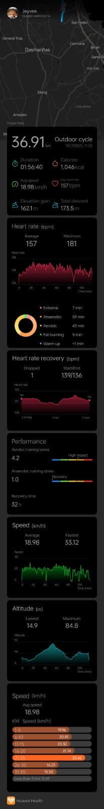 Here’s an example of a ride I synchronized using the HUAWEI Health app.