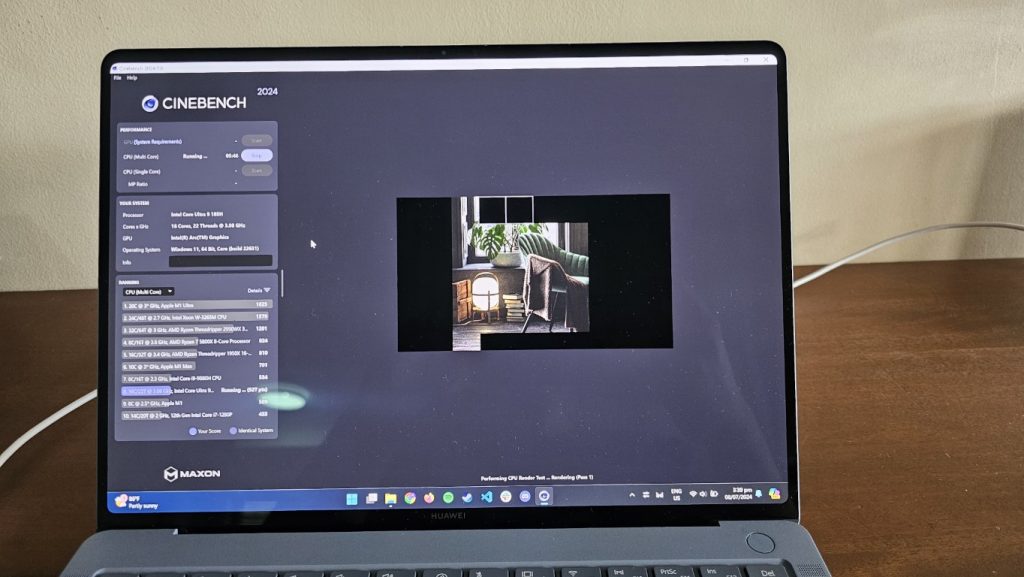 The MateBook X Pro runs on an Intel Core Ultra 9 Processor 185H platform. The CPU’s Intel Arc graphics drive a 14.2-inch OLED touch screen at 3120 x 2080 pixels (a 3:2 aspect ratio). The display’s frame rate is a smooth 120 Hz, just like most flagship mobile phones nowadays.