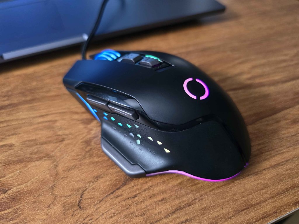 You get a programmable gaming mouse, a headset, and a massive mouse pad that’s decked out with LED lights around the edges—very gamer-like.