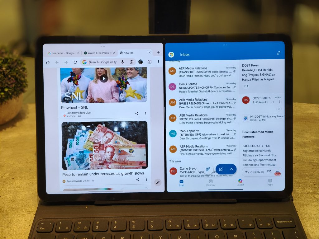 Performance-wise, the tablet runs on the Snapdragon 7s Gen 4 Mobile Platform, built on a 4nm process, which gave it enough power for everyday productivity without slowing down. I used multiple apps side by side. From Docs, Chrome, Outlook, to Notes, it didn’t struggle with the number of windows I had open.