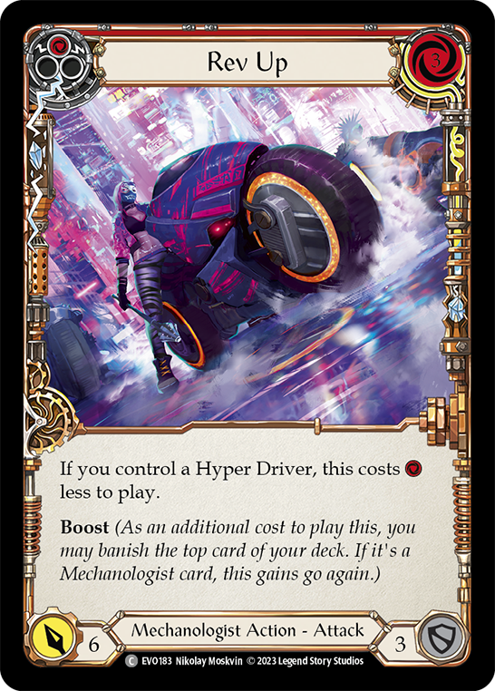 And now we are stuck no longer! With the new crank, scrap, galvanize, and evo upgrade card abilities—which didn’t exist before Bright Lights—and more new boost cards than we could have dreamed possible, we can do so much more now than just go fast: we can hit with the force of a truck. Reliably, repeatedly, and with a lot of flair.