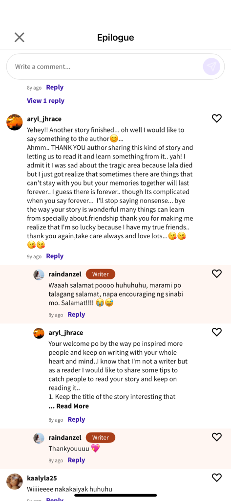 If you’re a Filipino writer wondering where to start—start on Wattpad. Post your story. Join the comments. Make friends. Because sometimes, all it takes is one reader to connect to remind you why you write in the first place.